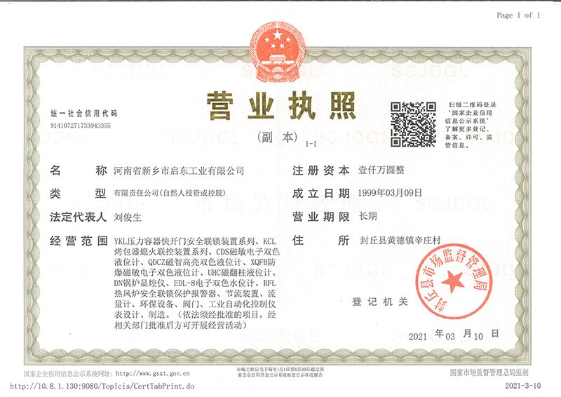 河南省新鄉市啟東工業有限公司始建于1987年,是專注研發、生產自動化儀器儀表(主要與壓力容器、鍋爐等容器配套使用)的廠家。主要產品有液位計(磁敏雙色型、磁翻柱型等)系列、烤包器熄火聯控裝置系列、壓力容器快開門安全聯鎖保護裝置系列、鍋爐報警器系列。二十多年來,公司產品暢銷國內并遠銷俄羅斯、蒙古與東南亞,深得廣大用戶的信賴和好評。我們多年來致力于自動化儀器儀表的研制生產,公司現具有完善的生產、試驗、檢測手段和設備??萍紕撔?、誠信服務,是我們不變的經營理念,我們將以強有力的技術支持及售后竭誠為客戶提供良好的服務。  2012年我公司成功研發了KCL系列烤包器熄火聯控裝置,并于2013年2月2日榮獲中華人民共和國國家知識產權局辦法的《實用新型**證書》<**號:2021202257735>該產品廣泛應用于唐鋼等大型鋼鐵企業,為烤包器安全作業提供了有力的保障。  2002年我公司成功研發磁敏電子雙色液位計獨特的高亮度LED紅綠雙色顯示,獲得了專家的首肯和用戶的一致好評。在此基礎上我公司研發人員十年磨一劍,致力于XQFB-1防爆型磁敏雙色液位計的研發,于2013年12月27日由國家防爆電器產品質量監督檢驗中心檢驗合格并頒發防爆合格證書<編號:cnex19.0883>。該產品性能得到了充分的發揮,廣泛應用于含有Ⅱ類A·B級T1-T4組可燃氣體或蒸汽與空氣混合形成的爆炸性混合物的0區、1區危險場所。連接用戶DCS或PLC系統實現遠距離集中顯示和控制,從而實現節能、數字化管理。為用戶增加了一定的經濟效益和社會效益,。2014年公司成功申請了夢潤儀表的logo,新的品牌新的形象,夢潤儀表是啟東的LOGO, 歡迎新老用戶前來洽談合作。  我們一如既往地注重科研的投入,憑借產品的不斷更新、加大科技含量,進一步拓展市場。我們相信品質成就未來,以過硬質量、優惠價格、完善的售后服務熱忱歡迎廣大客戶來我司視察指導、洽談業務;精誠合作,共創輝煌!